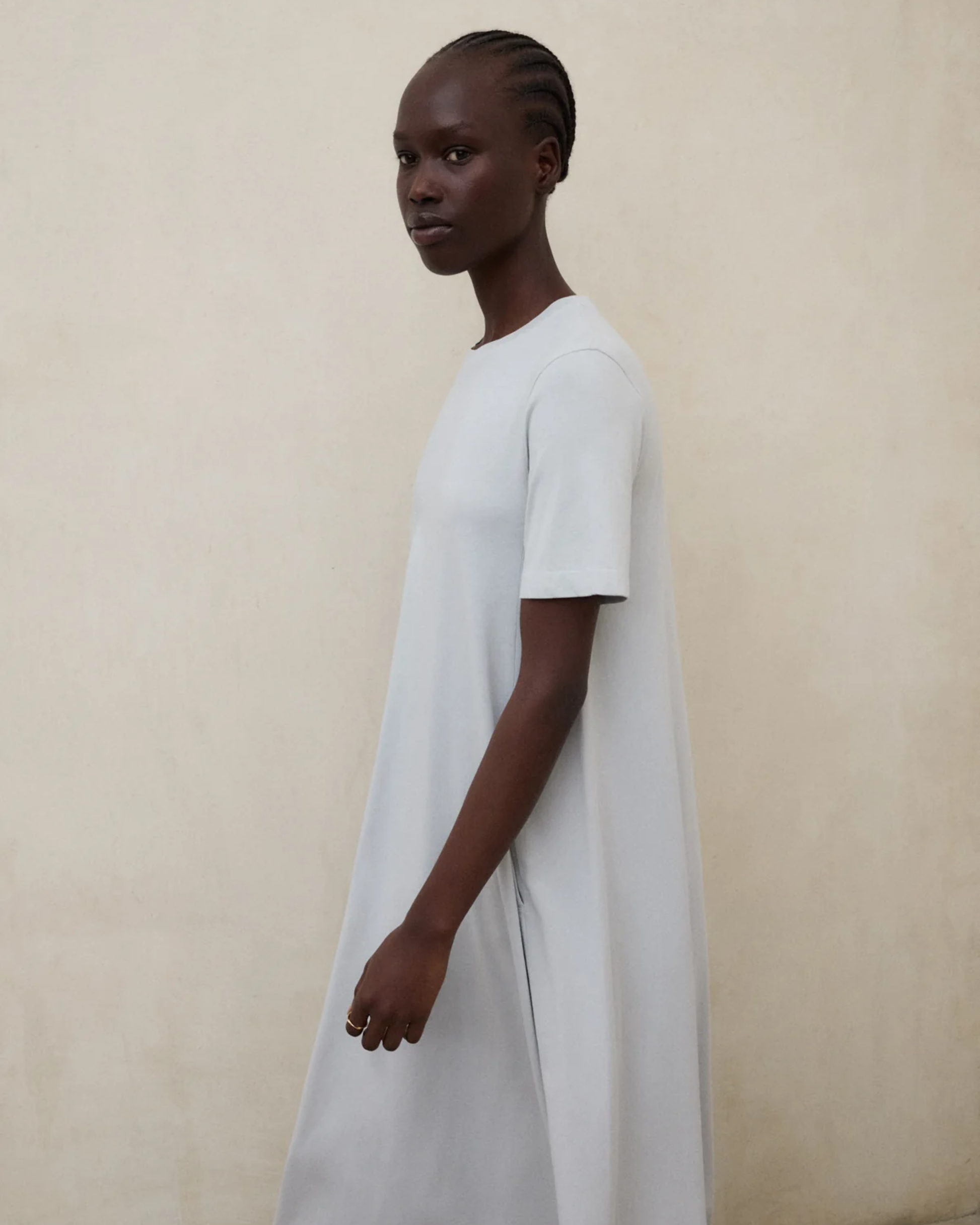 El Vestido Elettra está confeccionado con un tejido principal de 50% algodón orgánico, suave, ligero y agradable al tacto. Su fit relajado garantiza comodidad durante todo el día, mientras que las mangas cortas y el cuello redondo aportan un diseño sencillo y versátil. Los bolsillos laterales añaden un toque práctico y funcional, haciendo de este vestido una opción ideal para looks cotidianos con estilo natural. 50% algodón orgánico.
