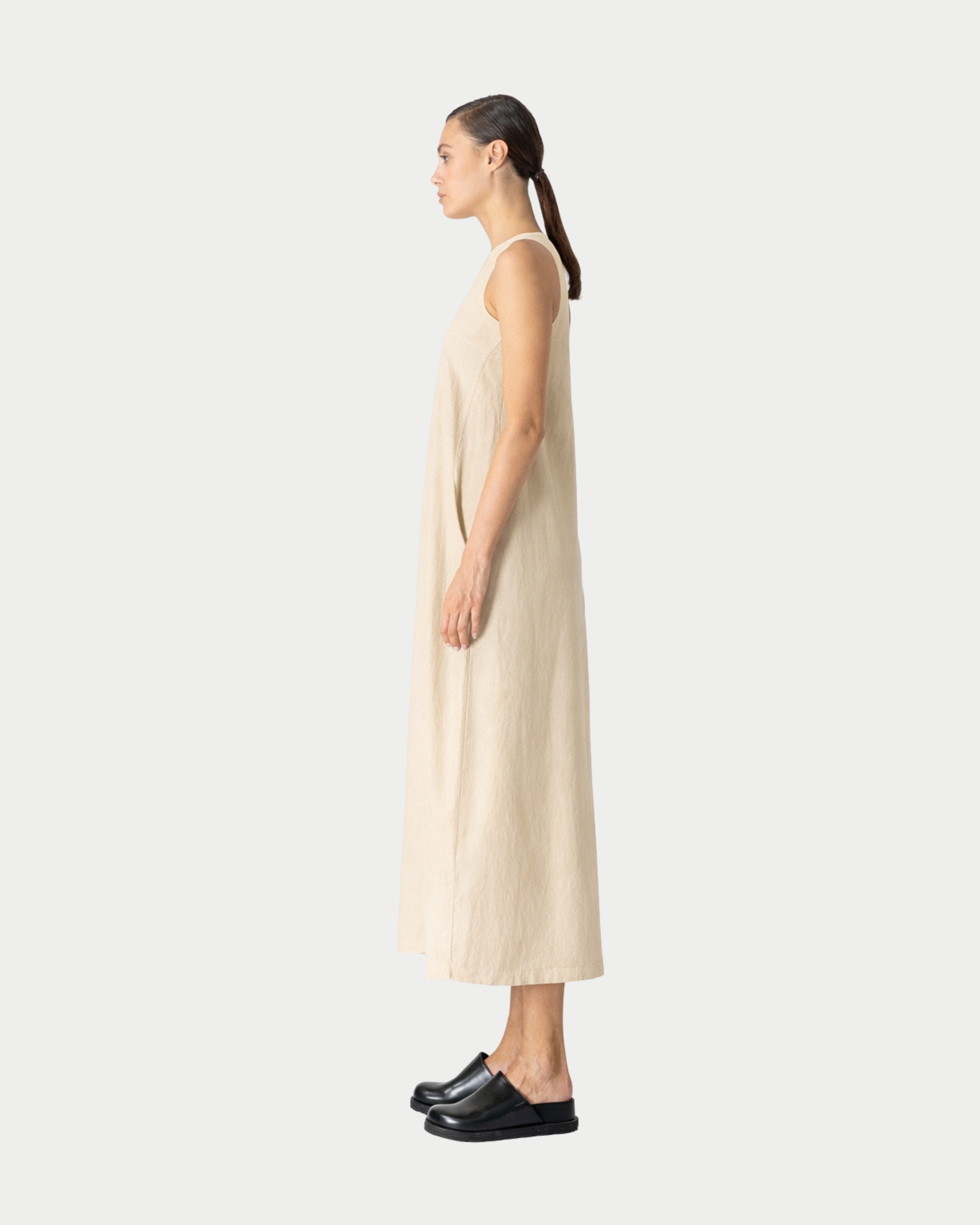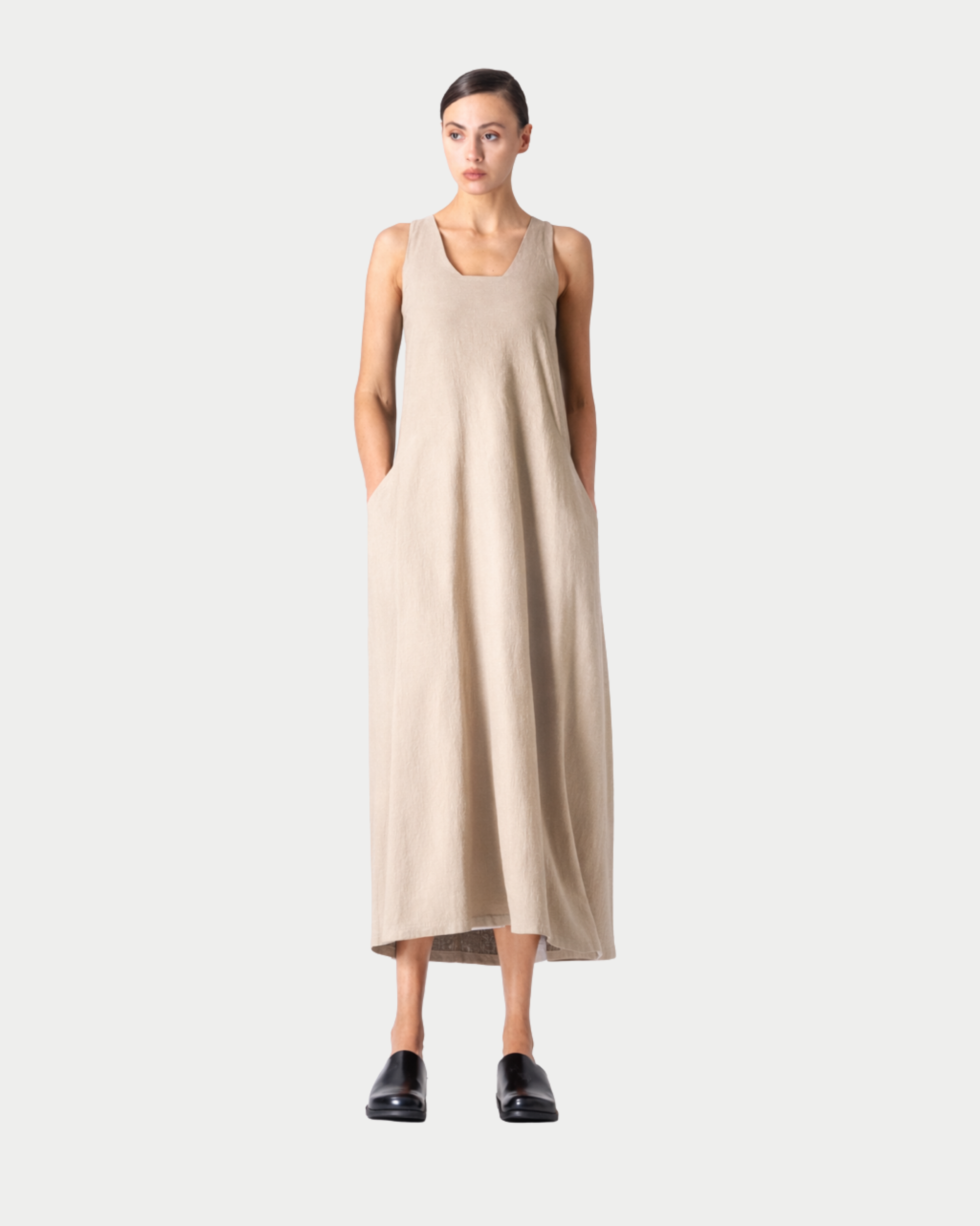 Abito Hameria realizzato in pregiato blend di lino e rayon. La composizione al 55% lino garantisce traspirabilità e struttura, mentre il 45% rayon aggiunge morbidezza e fluidità al drappeggio. Ideale per la stagione calda, questo capo combina comfort naturale con un'eleganza senza sforzo. Perfetto per occasioni casual e semi-formali.