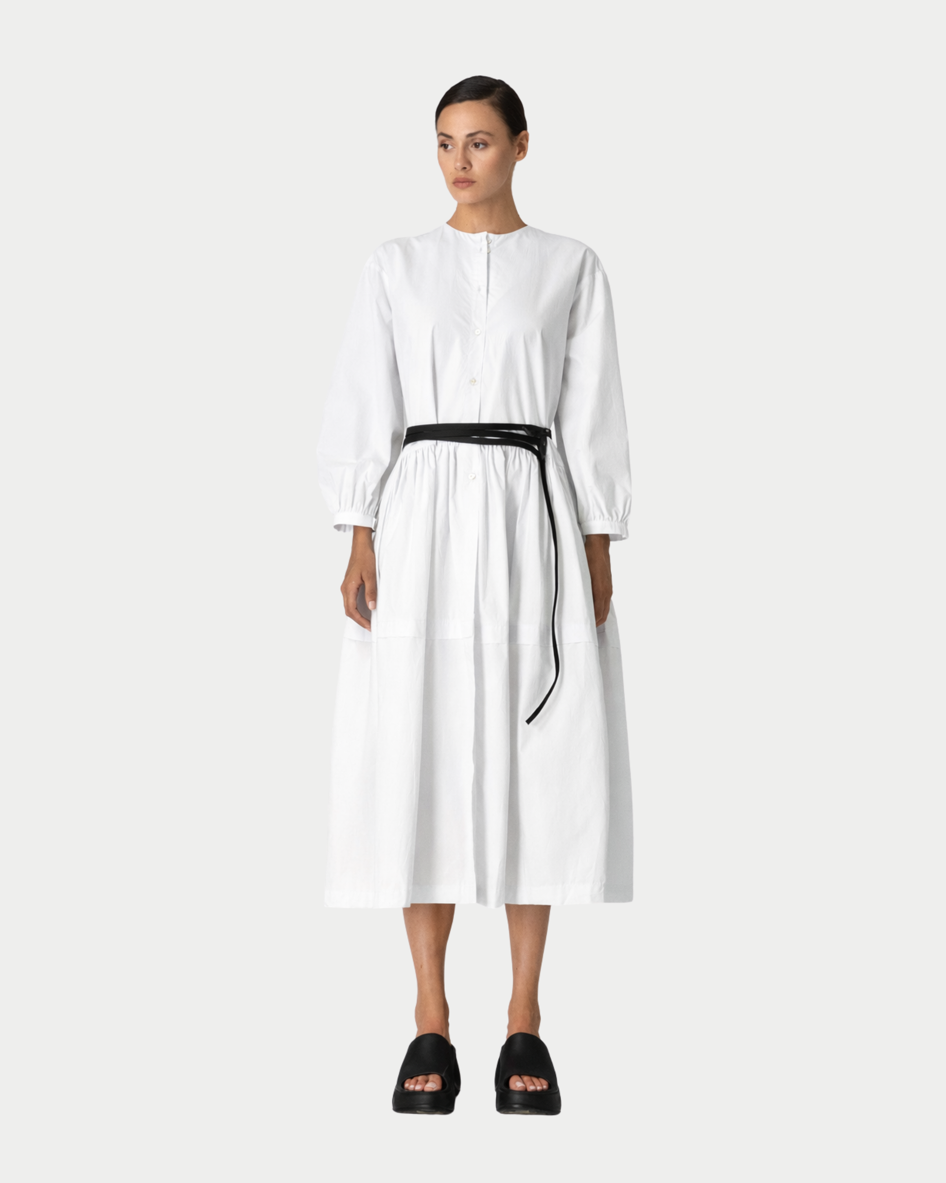Abito in cotone 100% puro, perfetto per una silhouette fluida e confortevole. Il design moko combina semplicità minimalista con eleganza senza tempo, ideale per chi ricerca versatilità nel guardaroba. Tessuto naturale e traspirante, adatto a ogni stagione. Un capo essenziale che si abbina facilmente a qualsiasi stile.
