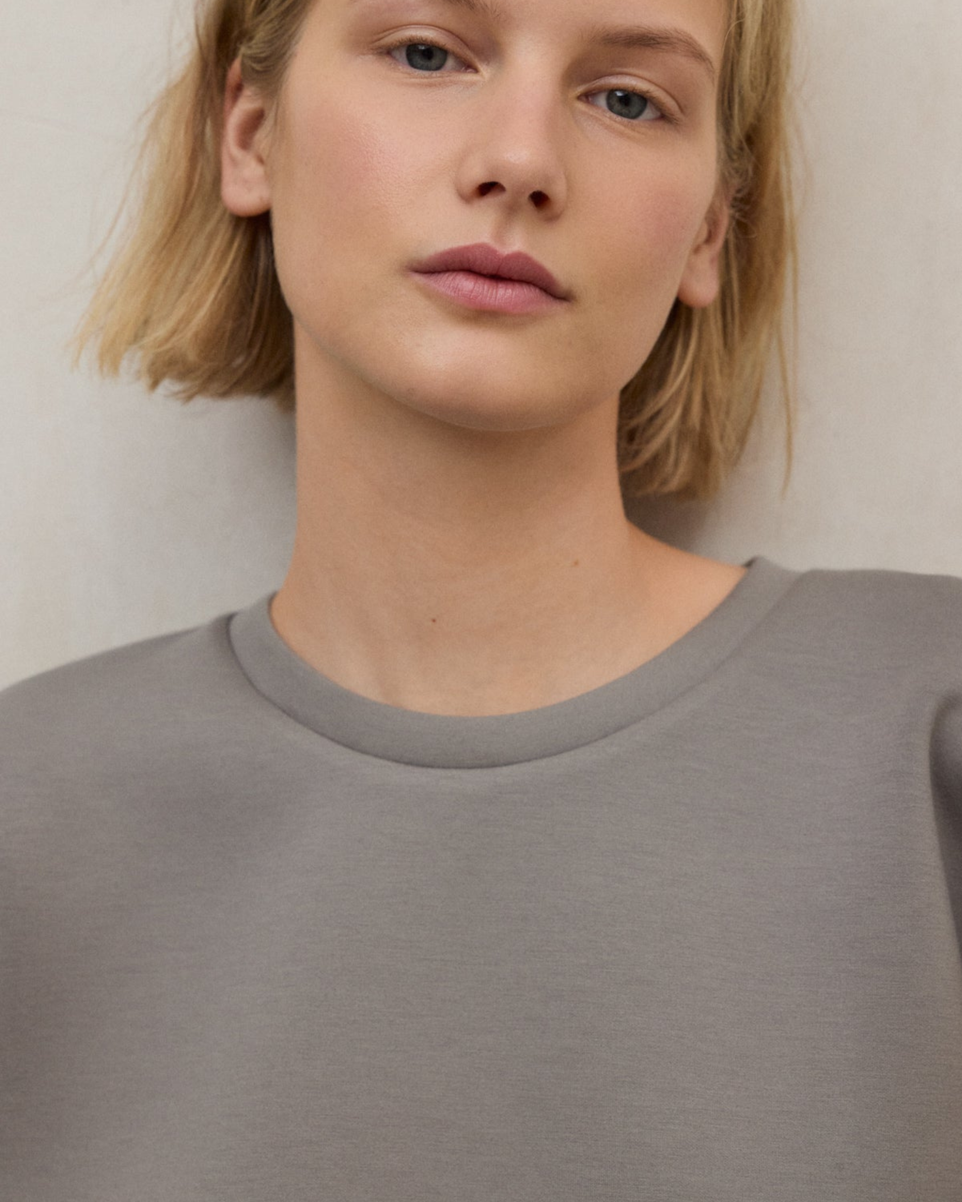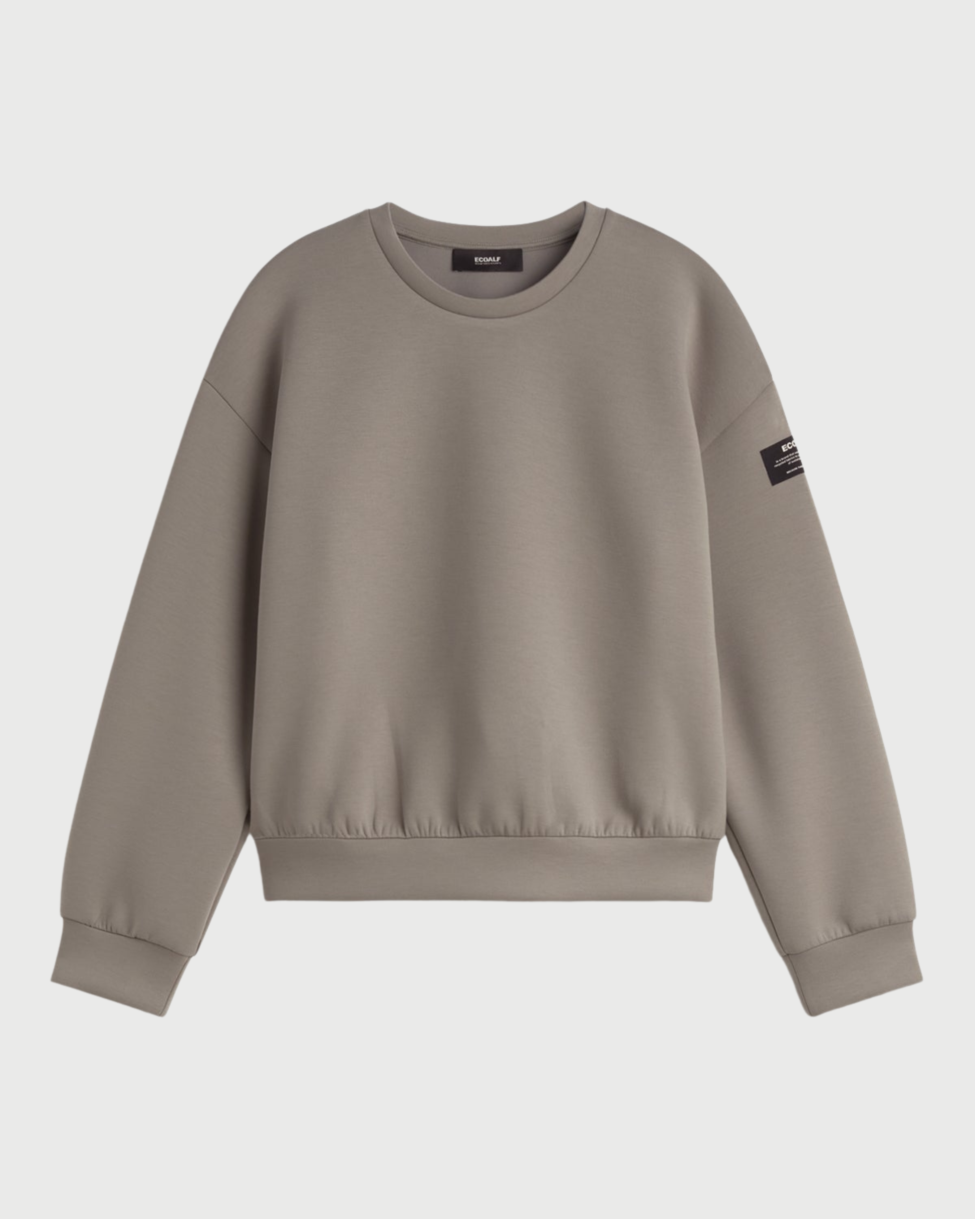 Felpa oversize in poliestere riciclato con scollo rotondo e spalle scese. Morbida, sostenibile e realizzata con energia 100% rinnovabile.