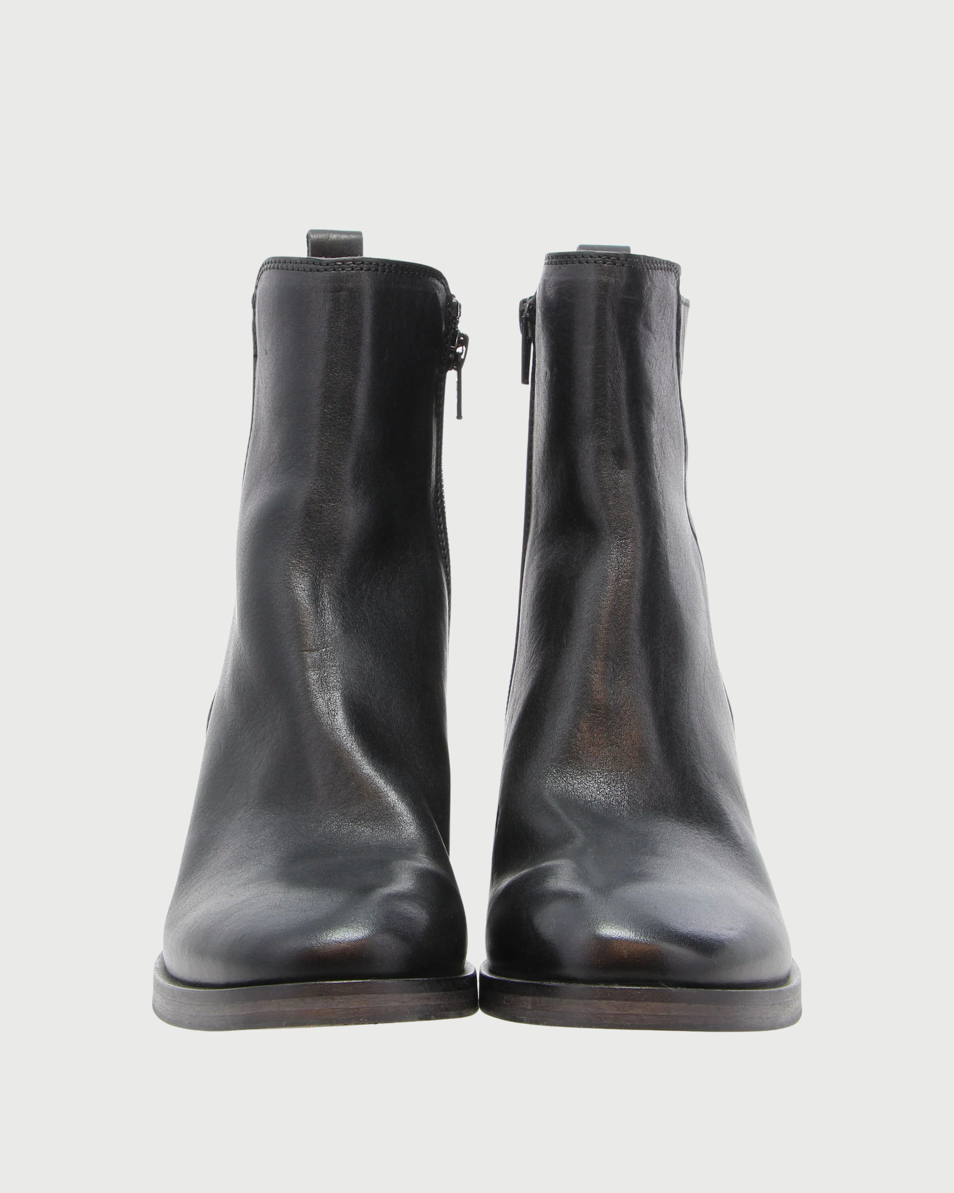 Stivale versatile in pelle Moma, caratterizzato da punta a mandorla e tacco largo impilato. La zip laterale facilita la calzata, mentre le cuciture tono su tono e il passante sul tallone completano il design essenziale. Un modello ankle height, pratico ed elegante, perfetto per l’uso quotidiano.