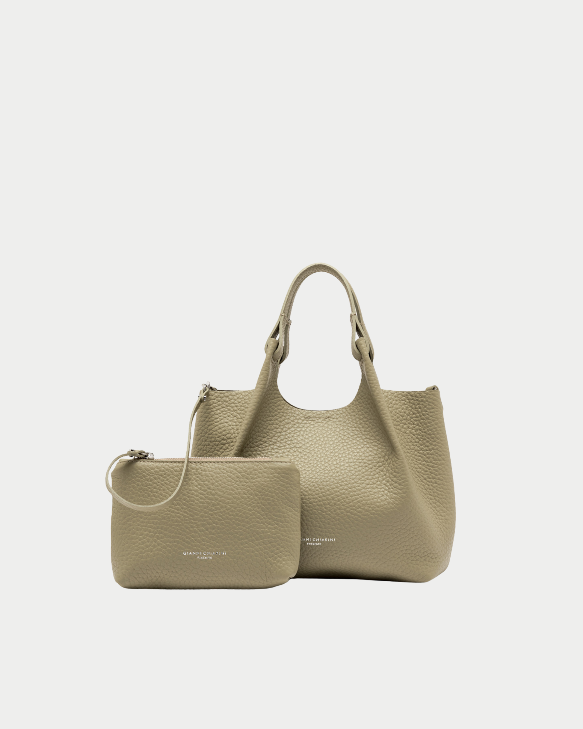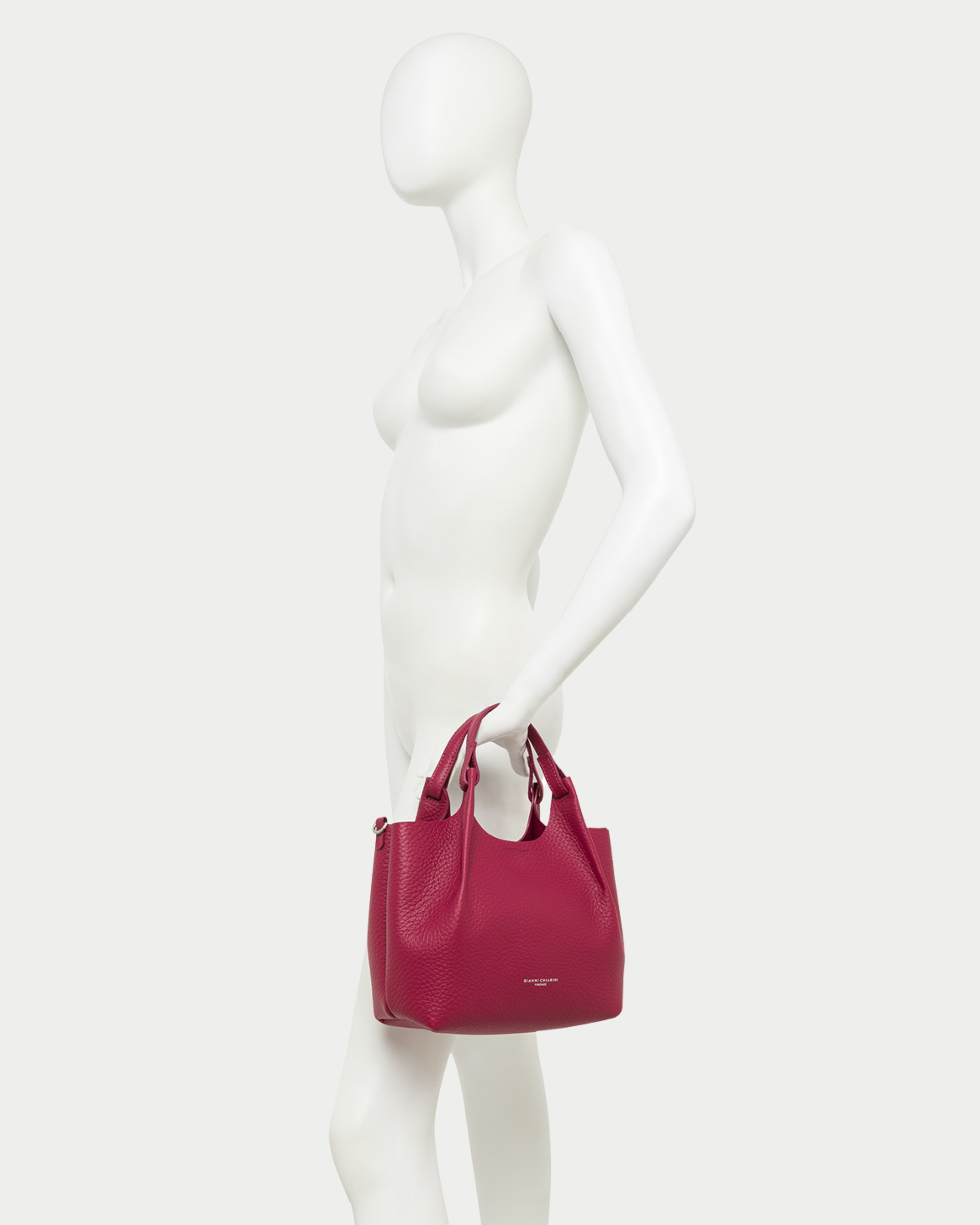 Icona del brand, la borsa DUA è realizzata in pelle con grana maxi dalla texture distintiva. Design essenziale con monoscomparto, profili superiori in pelle e doppi manici in tono. Completa di pratica pochette interna con chiusura zip, è perfetta per ogni look.