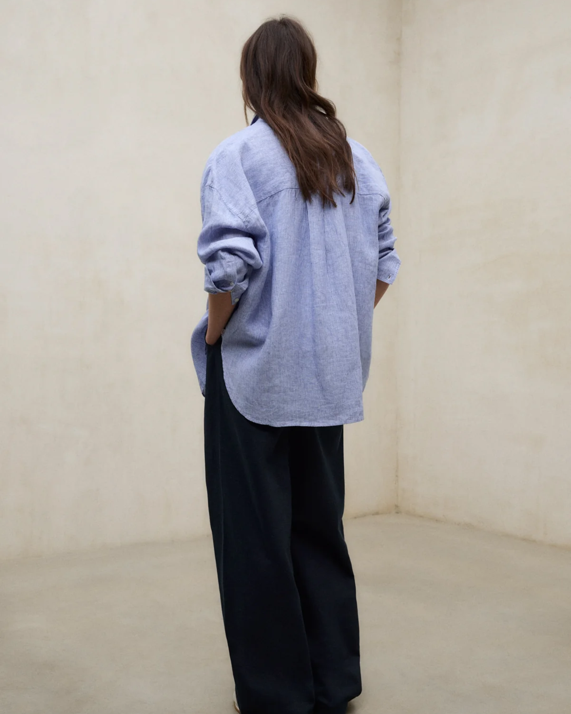 La Camisa Daria a rayas está confeccionada con un tejido principal de 80% lino, ligero y transpirable, ideal para la temporada cálida. Su fit oversize ofrece comodidad y un estilo relajado, mientras que el cierre delantero con botones permite un look clásico y versátil, perfecto para combinar con diferentes prendas en outfits casuales o más formales.