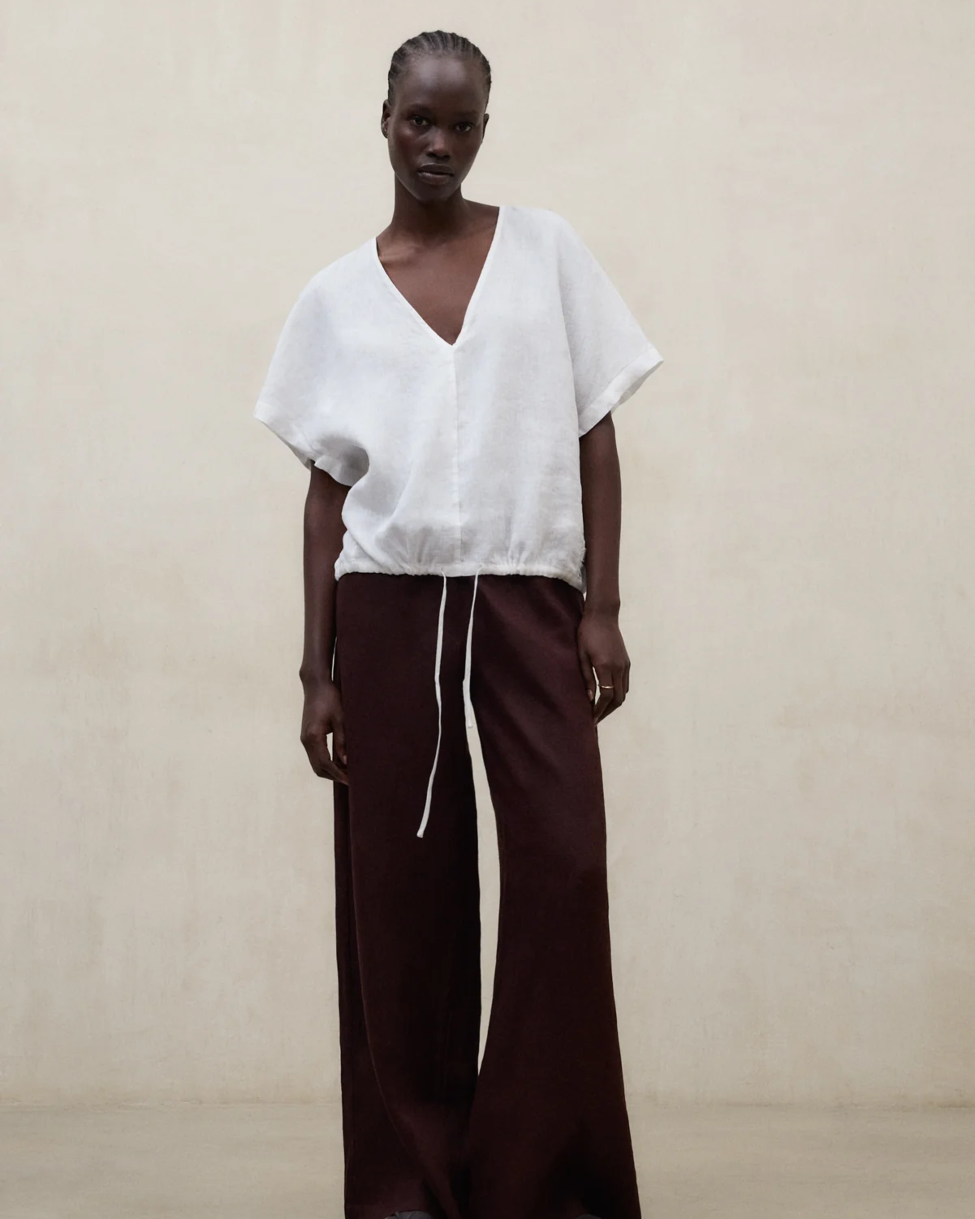 La camicia Dora interpreta l’eleganza estiva con linee essenziali e materiali naturali. Realizzata con un tessuto composto da 80% lino, è leggera e traspirante, perfetta per le giornate più calde. Il fit rilassato garantisce comfort e libertà di movimento, mentre lo scollo a V e il fondo regolabile aggiungono un tocco funzionale e contemporaneo al design.