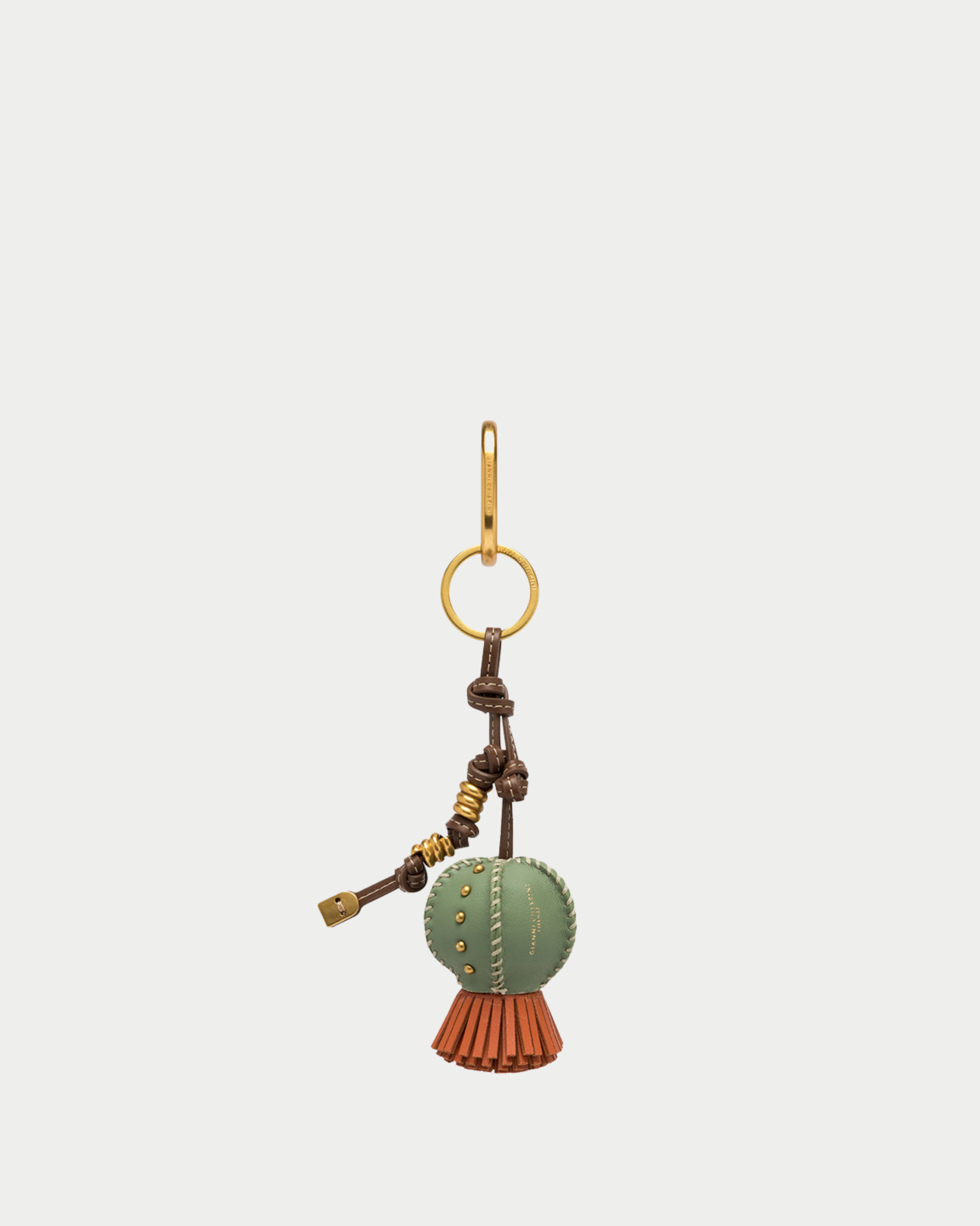 Novità di collezione, il charm Cactus by Gianni Chiarini Firenze è un accessorio originale e decorativo, ideale per dare carattere anche ai look più essenziali. Realizzato in pelle sintetica con piccole borchie, presenta un design creativo con dettagli annodati, inserti in metallo e moschettone logato per impreziosire borse e zaini con un accento luminoso e di tendenza.