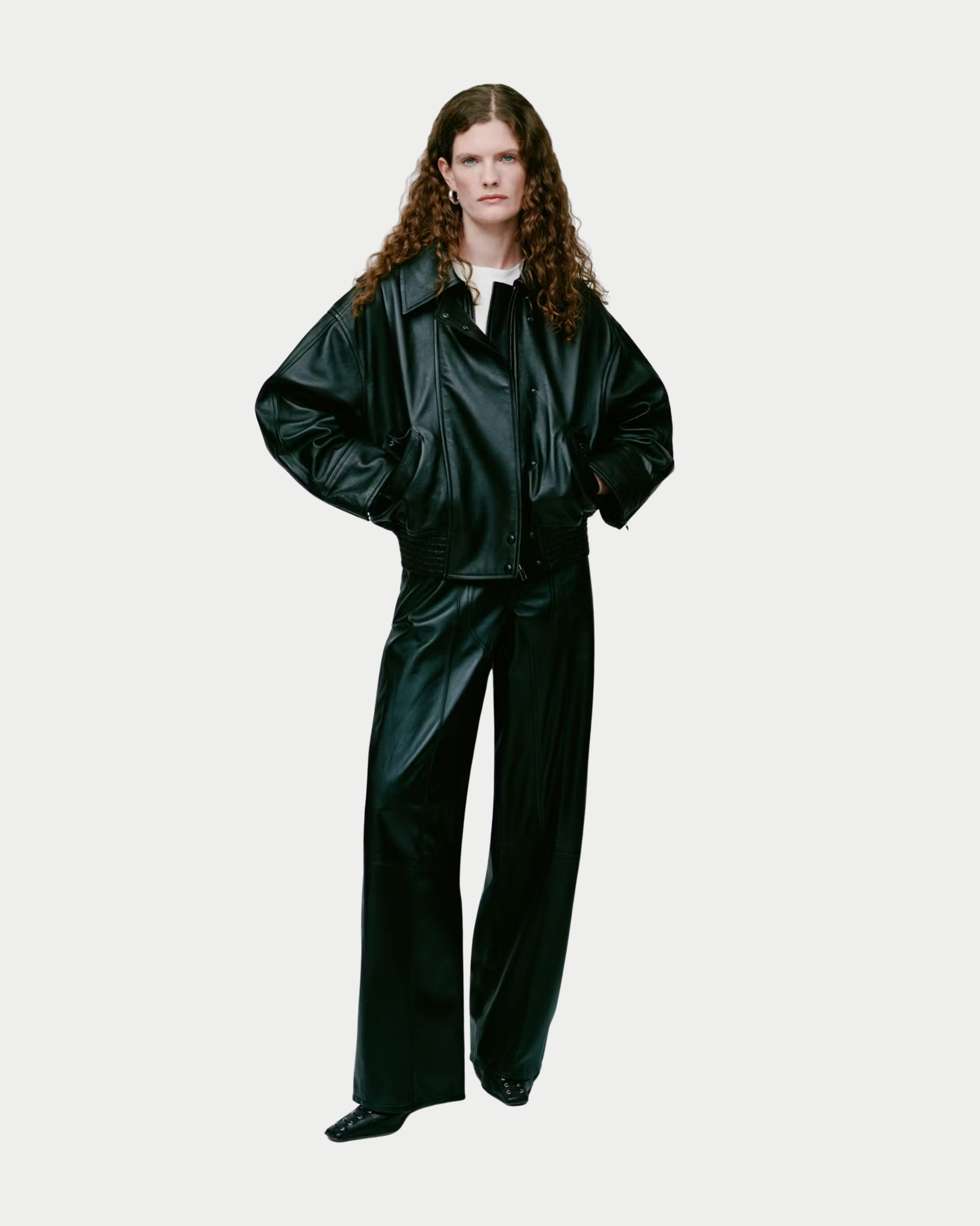 Giacca dal fit rilassato con silhouette oversize e colletto strutturato a punta. Le grandi tasche con patta, la finitura liscia e i polsini ampi definiscono un capo d’impatto, deciso e contemporaneo.