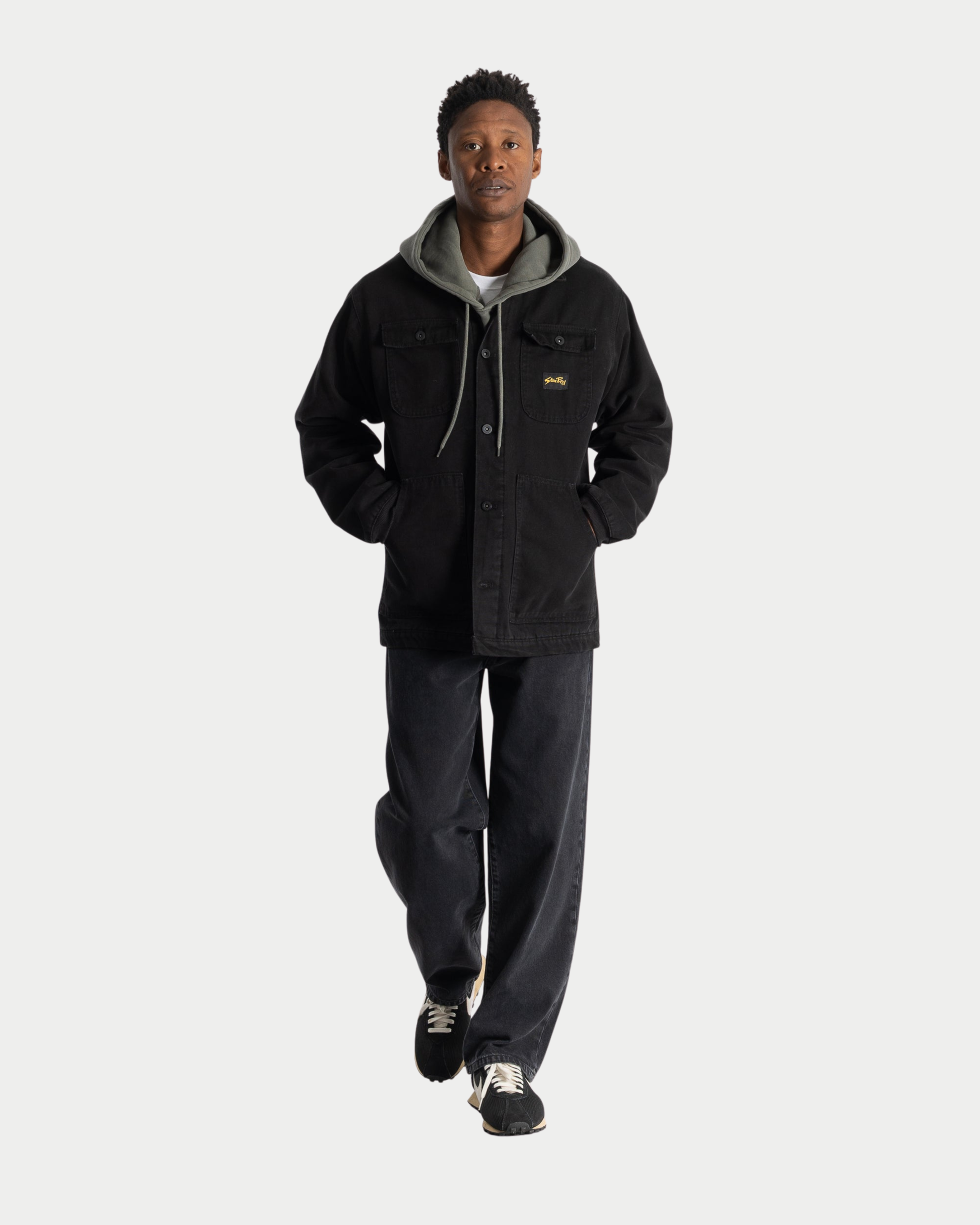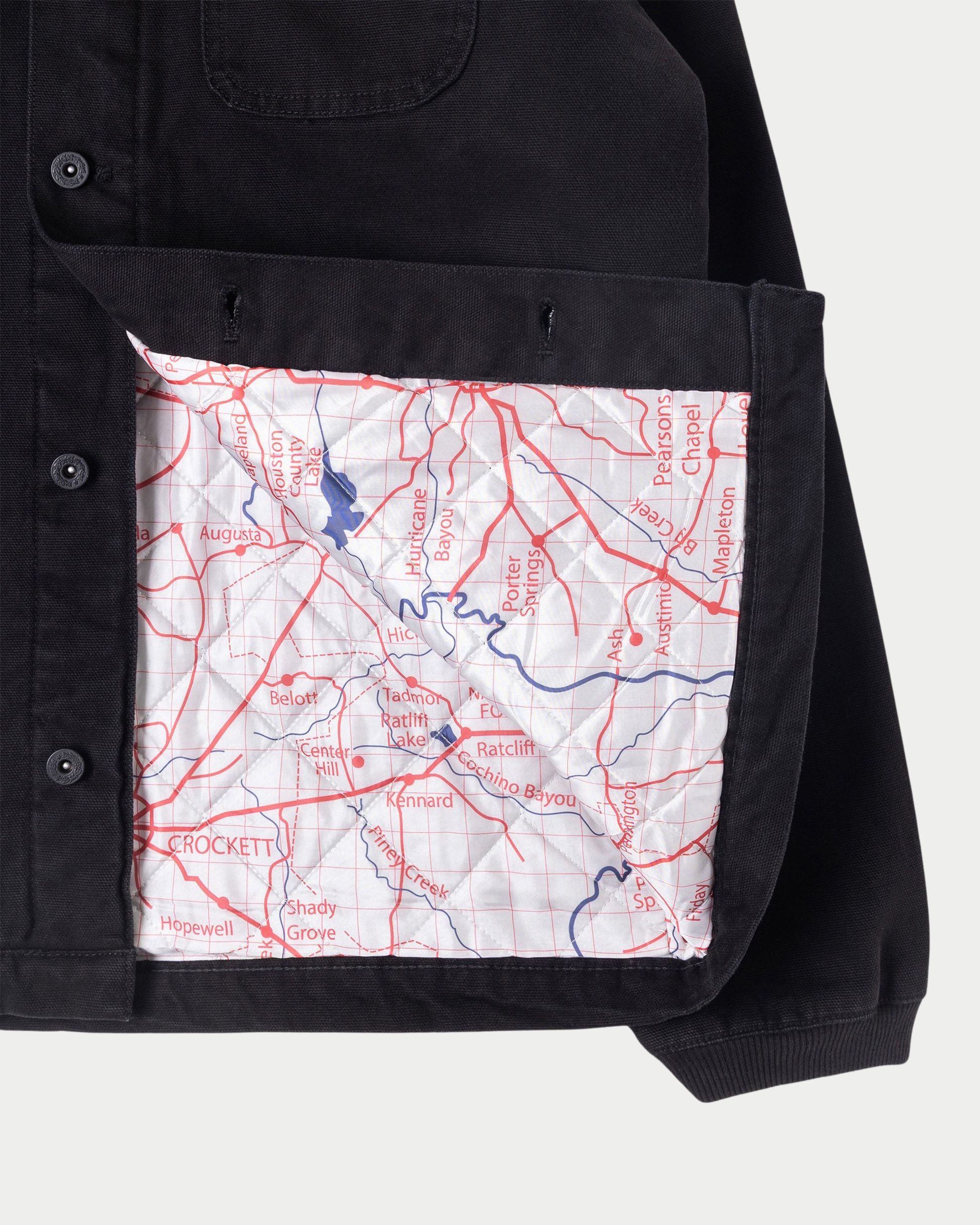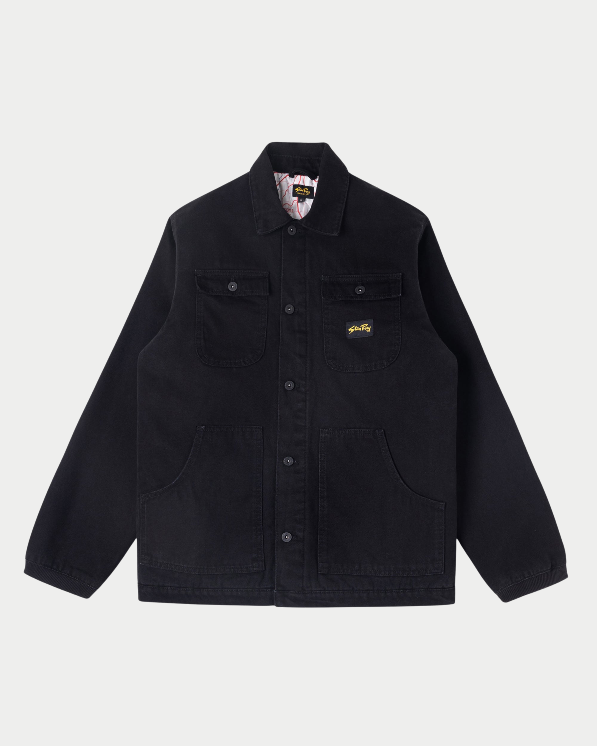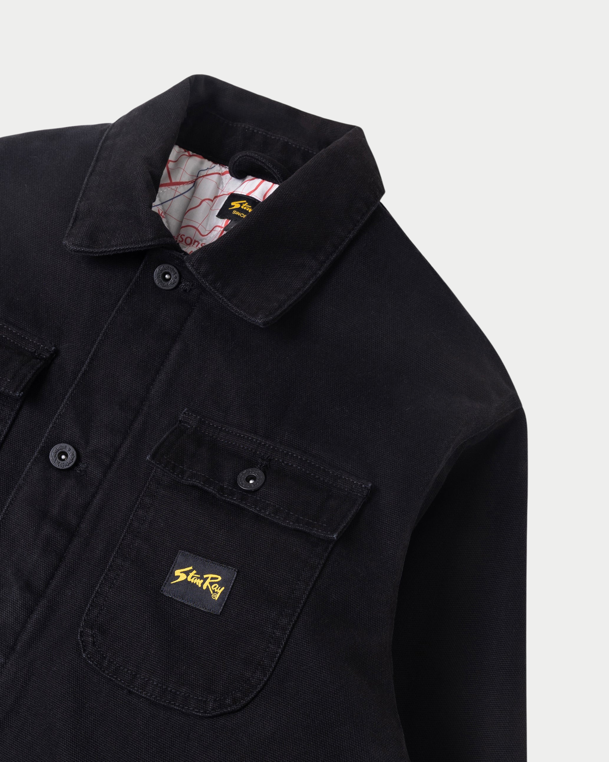 La Pork Chop Jacket si distingue per il suo carattere deciso, valorizzato dal colletto in needle cord a contrasto. L’interno è foderato con imbottitura da 100 gsm e stampa Crockett map, che aggiunge un dettaglio grafico distintivo. Le maniche con polsini elasticizzati e le ampie tasche pork chop garantiscono funzionalità e comfort, mentre i bottoni a pressione Stan Ray con logo inciso completano il design con un tocco autentico.