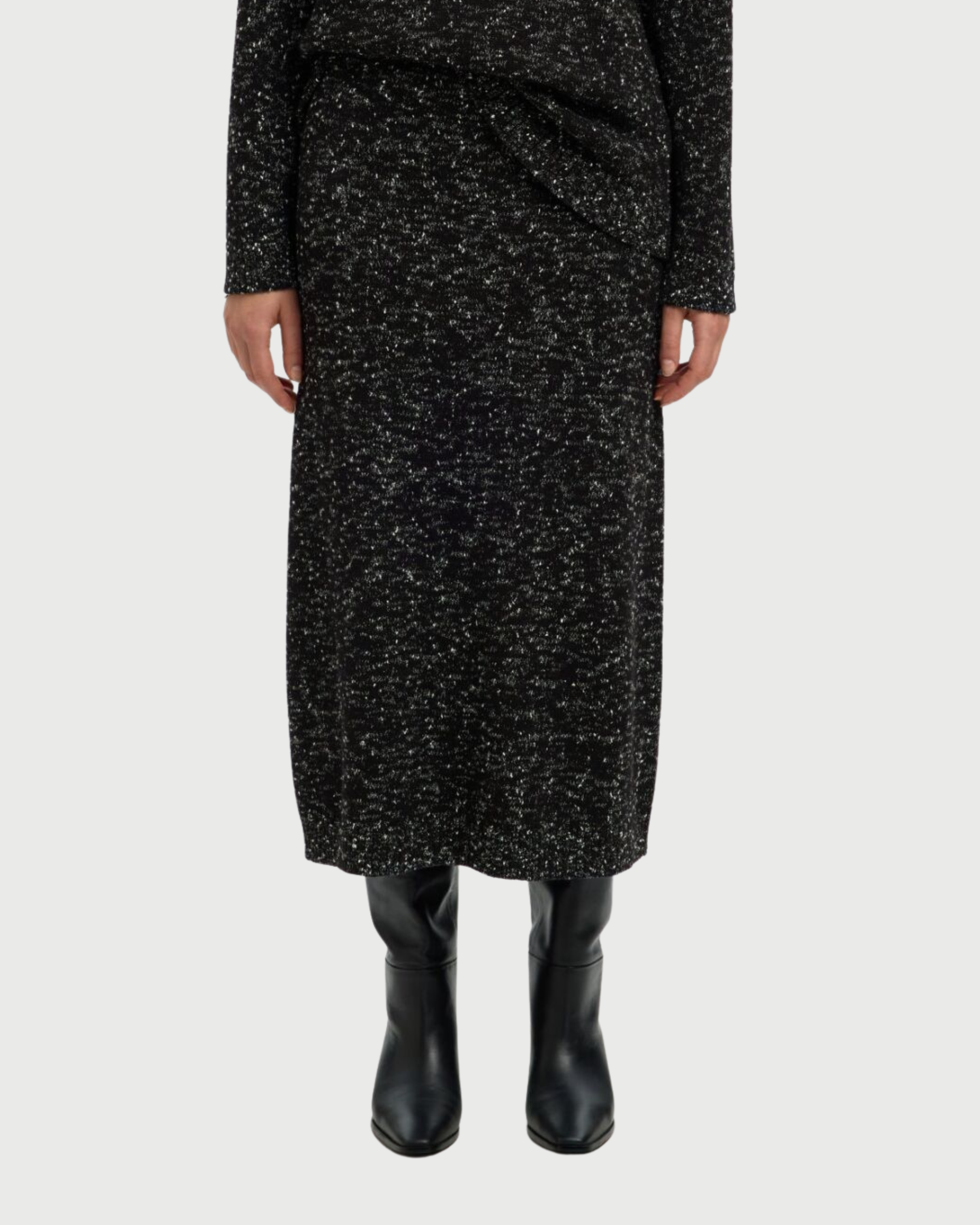 Gonna Eine: la scelta sofisticata per chi ricerca comfort senza compromessi. Realizzata in maglia pregiata, questa gonna midi a vita alta abbraccia la silhouette con eleganza naturale. La fascia elastica in vita garantisce una vestibilità impeccabile durante tutta la giornata, mentre il taglio senza fodera la rende leggera e traspirante. Un capo versatile che si adatta perfettamente a qualsiasi occasione, dal casual al più raffinato, diventando un elemento essenziale del guardaroba contemporaneo.