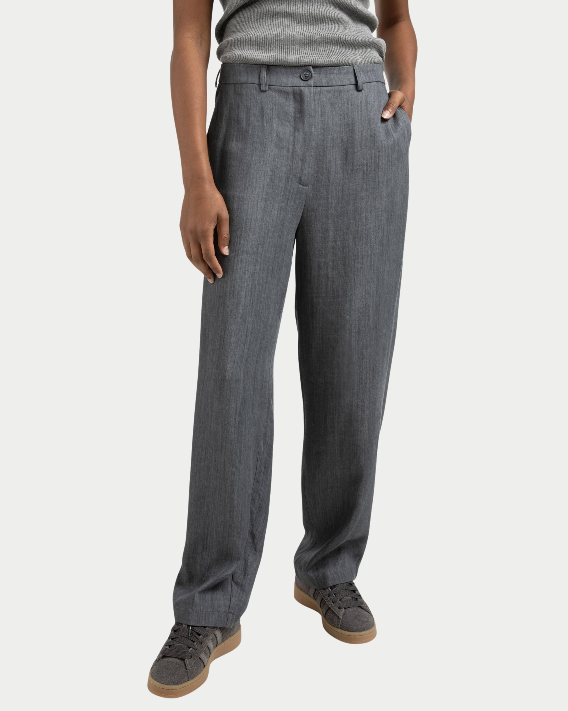 Pantaloni ad alta vita con taglio carota che unisce eleganza senza tempo e comfort contemporaneo. La silhouette affusolata valorizza la figura con una vestibilità generosa sui fianchi e sulle cosce, che si assottiglia verso la caviglia per un effetto raffinato. Realizzati con attenzione ai dettagli, questi pantaloni sono perfetti per chi desidera uno stile versatile che passa senza sforzo dal giorno alla sera. Un capo essenziale per una guardaroba consapevole e di qualità.