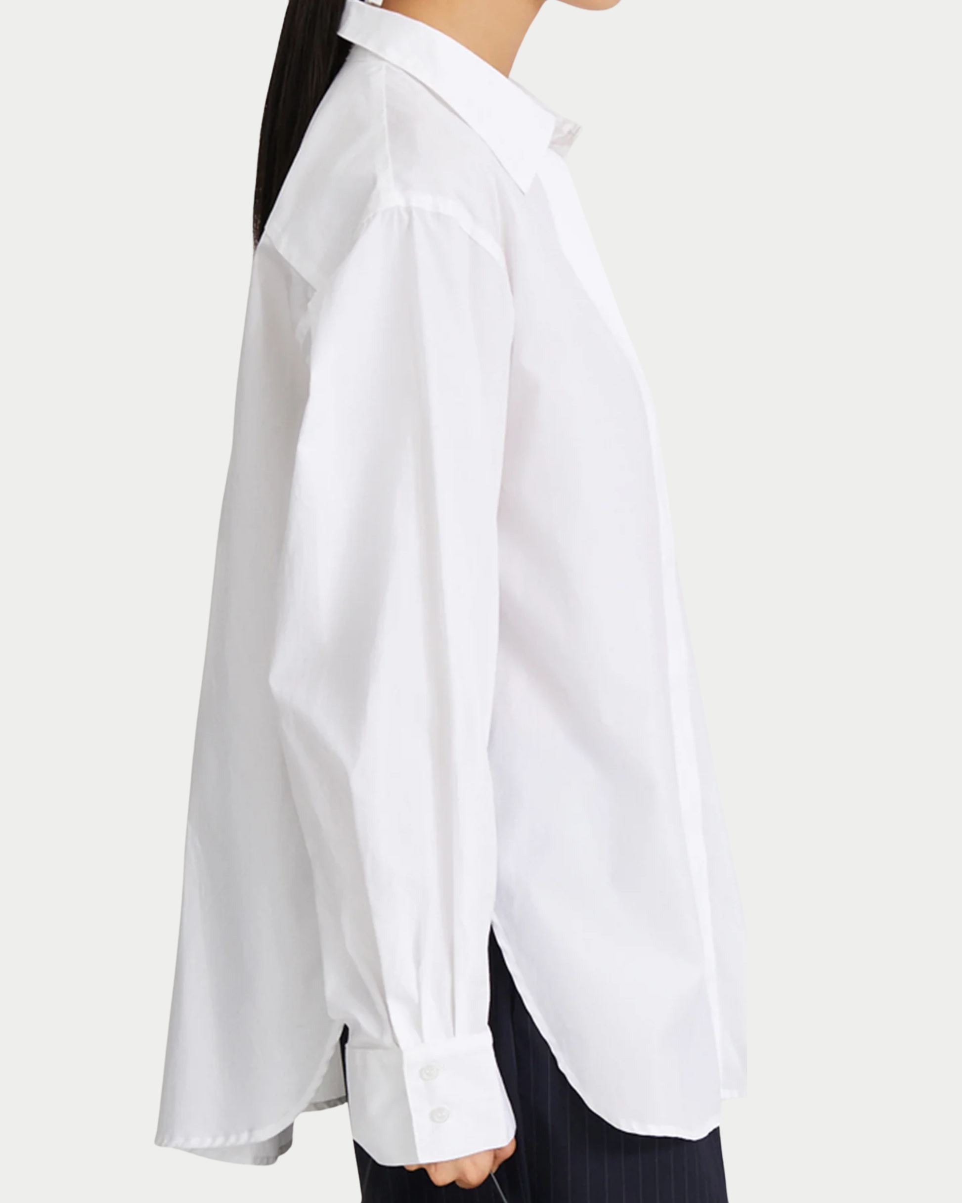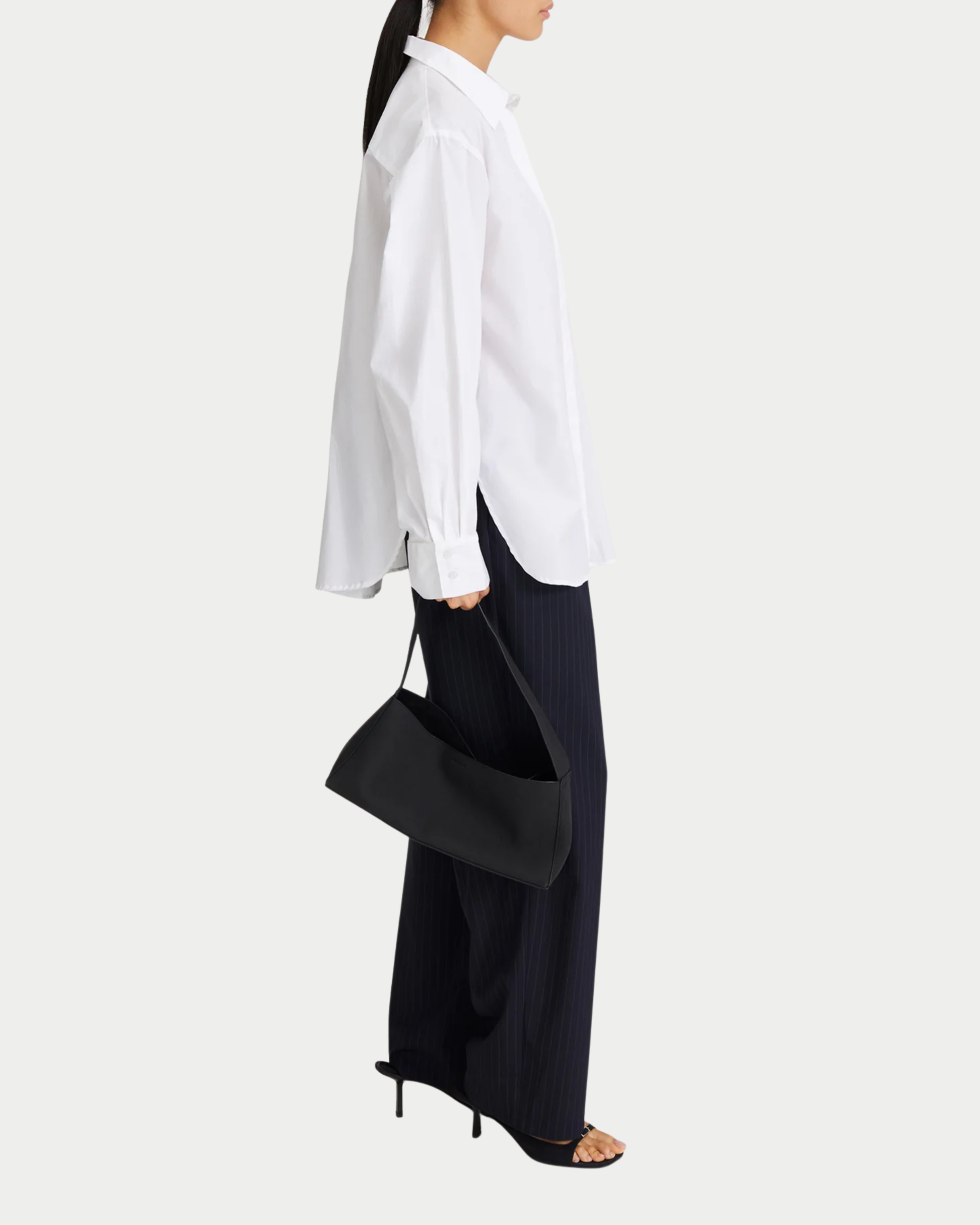 La Jansell Shirt è realizzata in cotone compatto con silhouette ampia e svasata. Carré posteriore signature Stylein, maniche lunghe voluminose con polsi a fessura e colletto classico. Logo ricamato tono su tono al fondo per un’eleganza senza tempo.