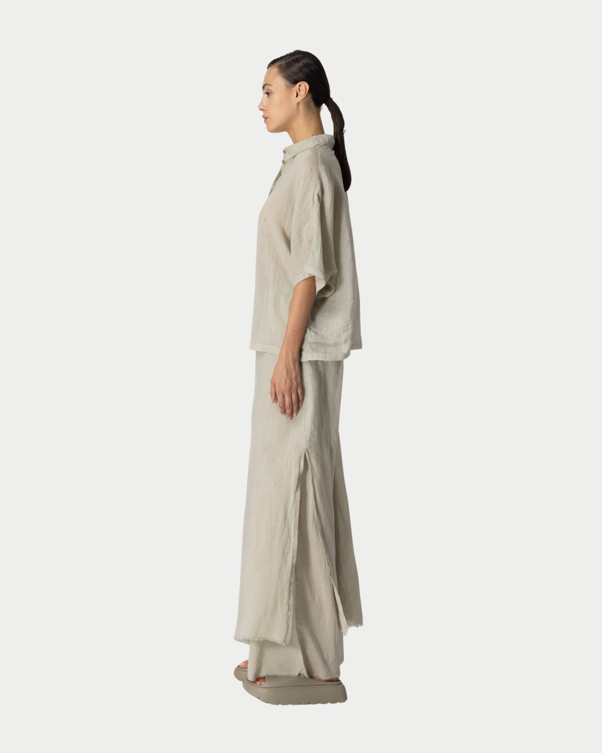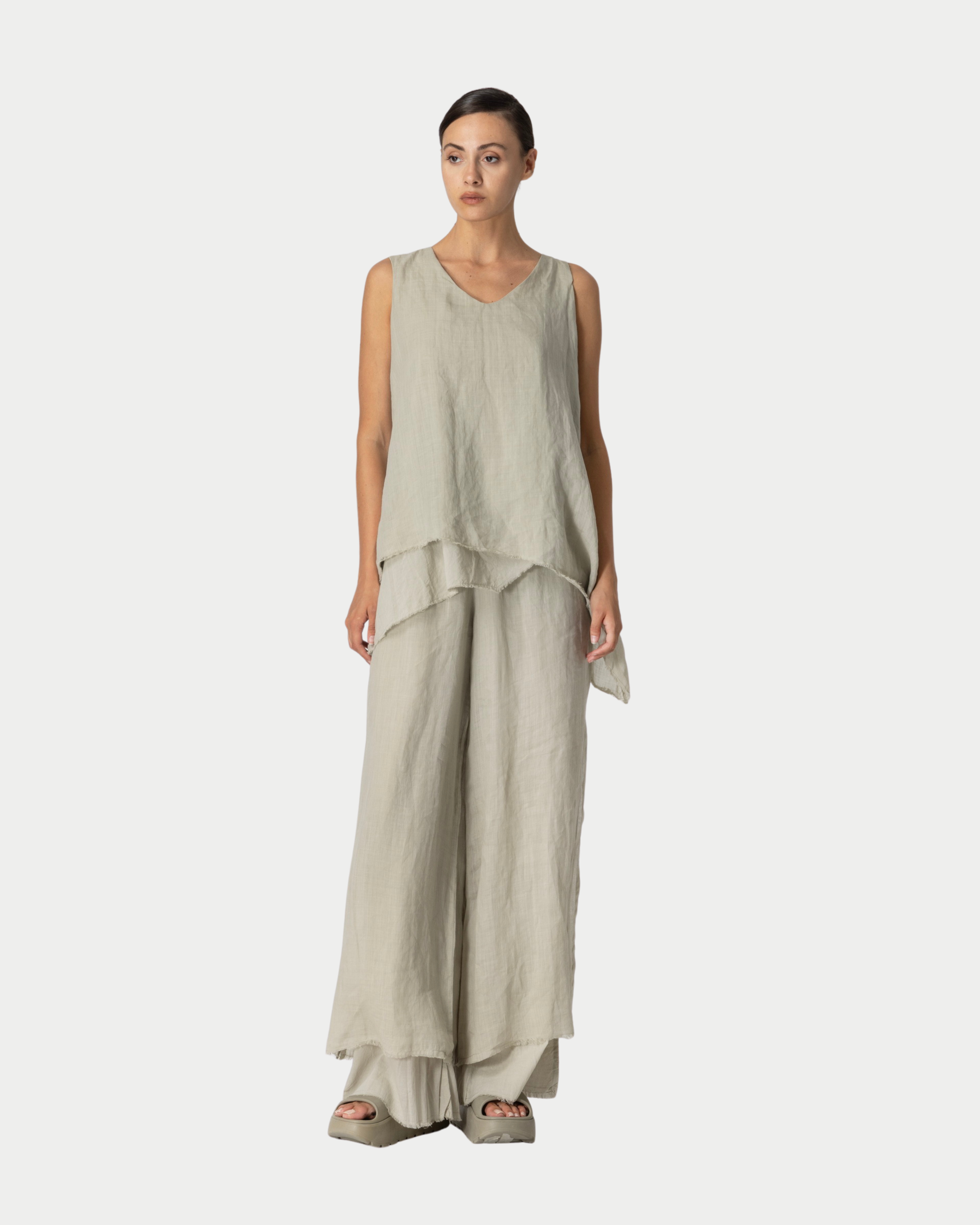 Pantaloni in lyocell e ramiè che uniscono comfort e sostenibilità. La miscela di fibre naturali garantisce traspirabilità, morbidezza e una caduta elegante. Ideali per uno stile contemporaneo che non scende a compromessi sulla qualità. Perfetti per la stagione calda, mantengono la forma e richiedono una manutenzione minima.