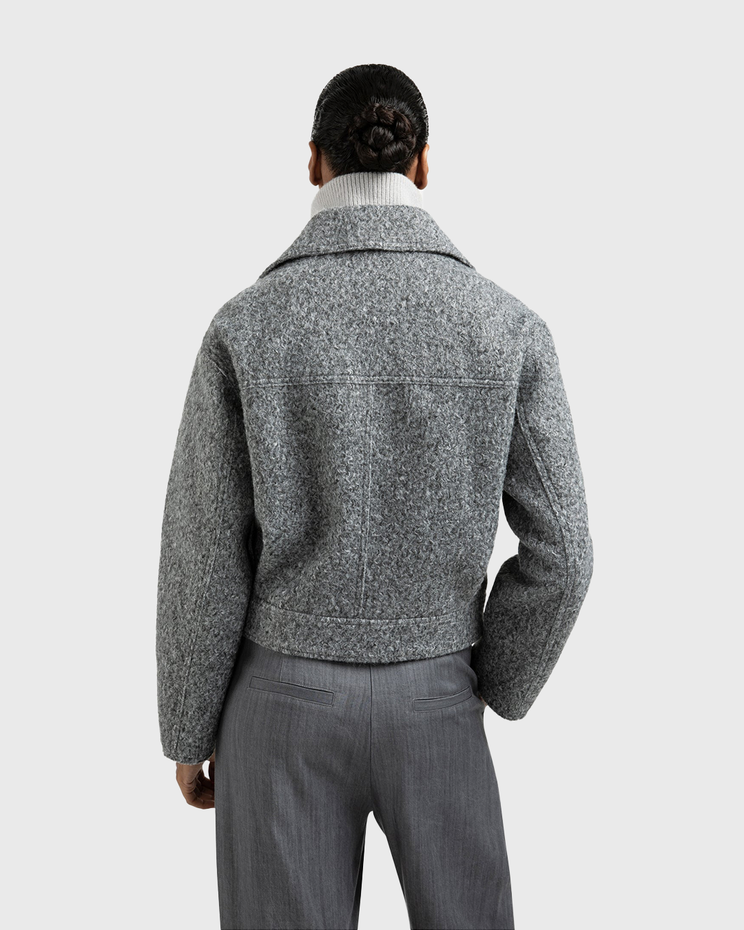 Giacca in morbido tessuto bouclé con vestibilità regolare e linee pulite. Colletto classico, chiusura frontale con bottoni e tasche laterali per un design pratico e raffinato. Perfetta per completare look eleganti o casual con un tocco di stile sofisticato.
