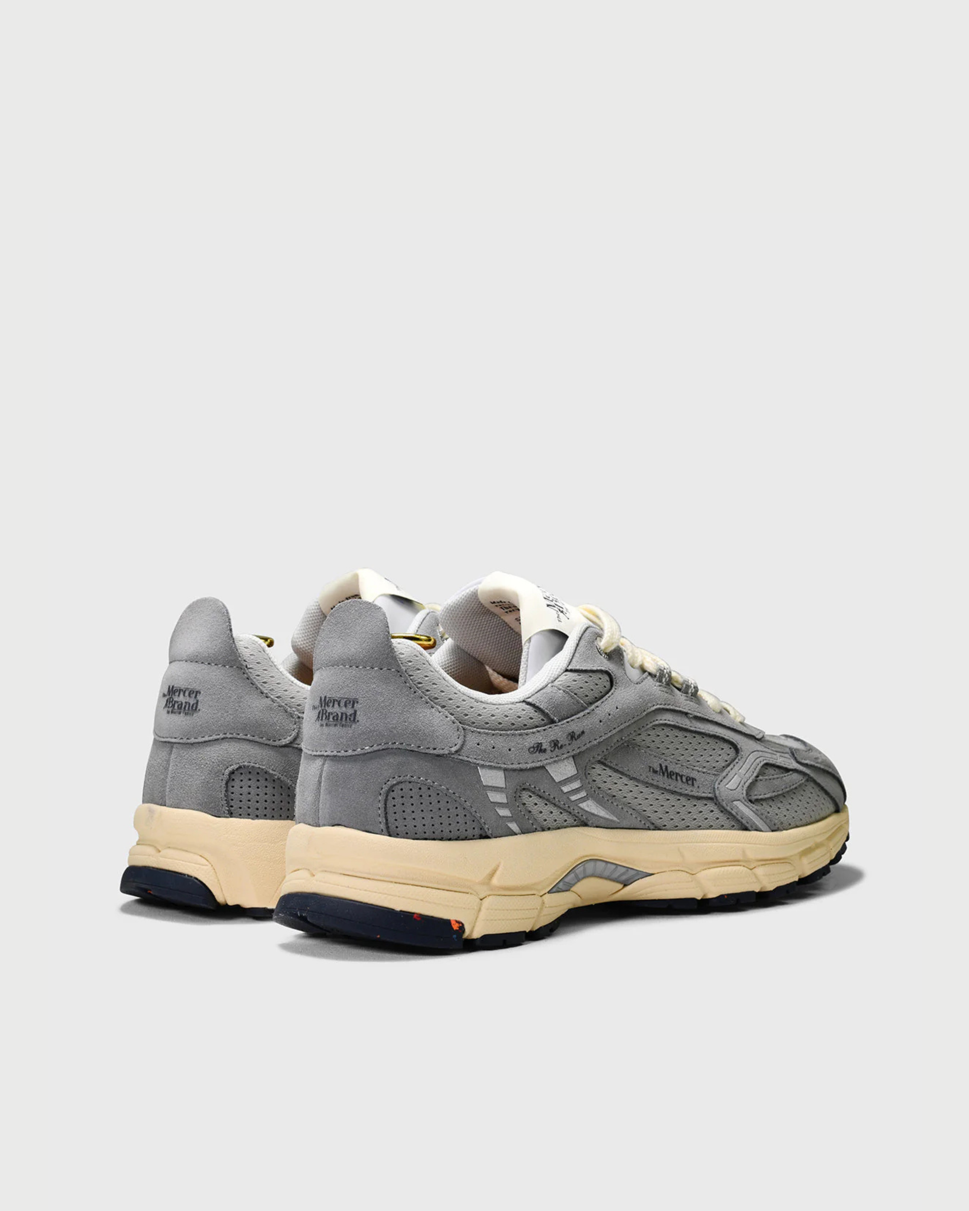 La Re-Run Vintage Grey riprende l’iconica silhouette running degli anni ’80 ed è realizzata per sembrare già “vissuta”, con un effetto invecchiato di 20 anni direttamente dalla scatola. Suole ingiallite, lacci vintage e una combinazione di colori tipica dell’estetica Mercer rendono questa sneaker un perfetto equilibrio tra nostalgia e stile contemporaneo.