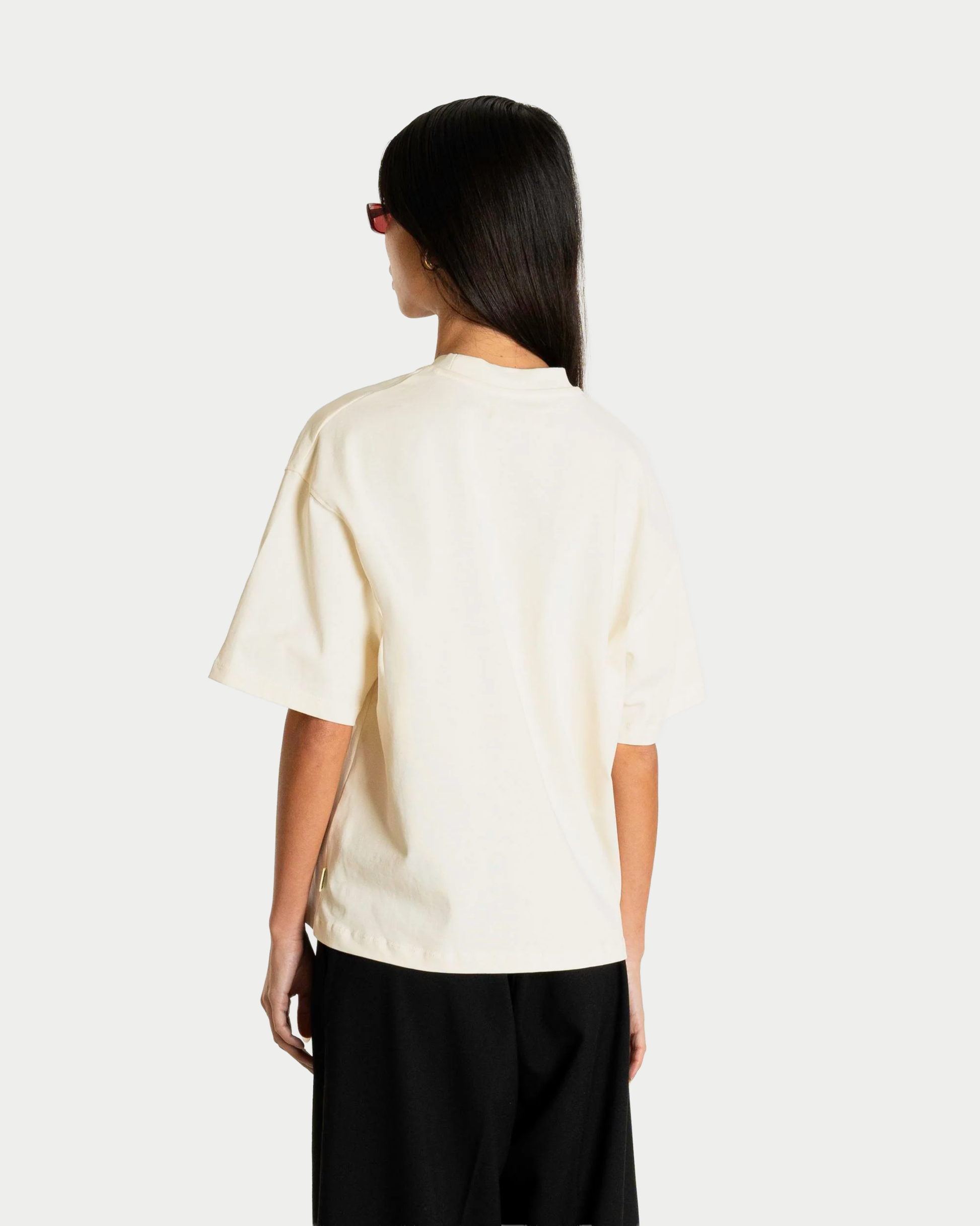 T-shirt in cotone organico 100% con girocollo e maniche corte. Logo ricamato sul petto per un tocco essenziale e raffinato. Un capo versatile e senza tempo, perfetto per il guardaroba quotidiano moderno.