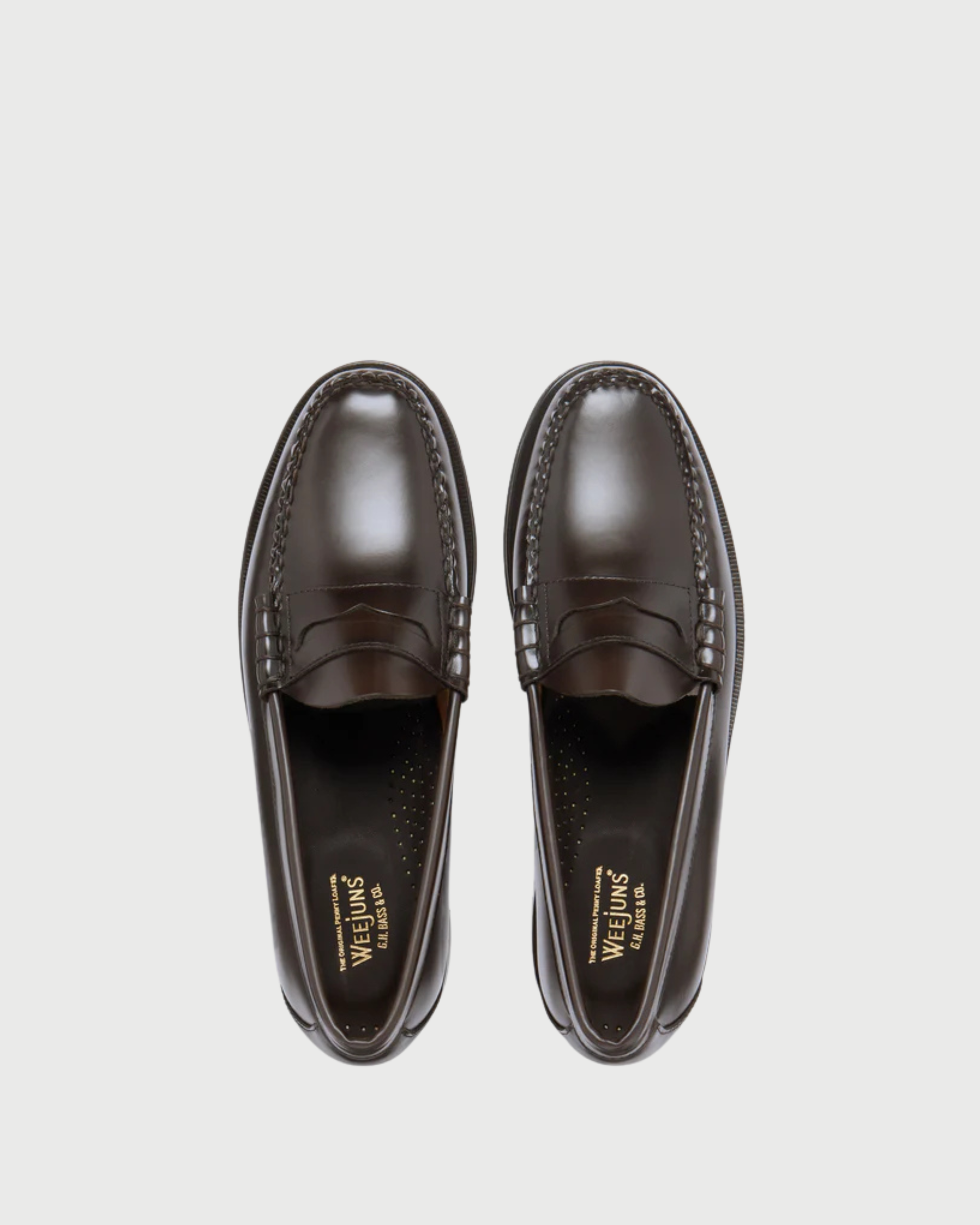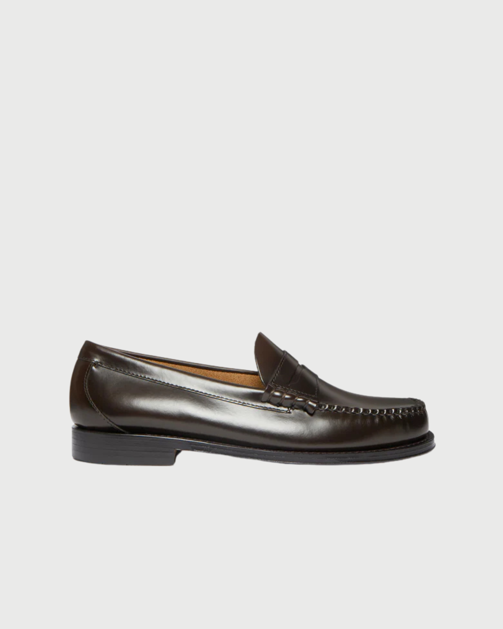 I Weejuns Larson di G.H. Bass sono penny loafers da uomo in pelle chocolate, un grande classico dell’eleganza americana. Realizzati con lavorazione artigianale e cuciture tradizionali, offrono comfort, flessibilità e uno stile senza tempo, perfetti per look formali o smart casual.